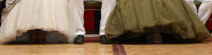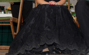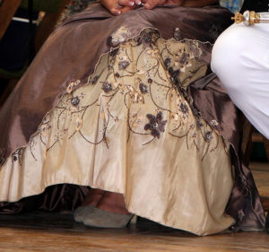 Unter langen Kleidern sind die Schuhe, die ihr tragt, zunächst nicht zu sehen. ABER sobald ihr sitzt, sorgen die Unterröcke und der Reifrock dafür, dass der Blick auf eure Schuhe und etwas Bein frei gegeben wird.