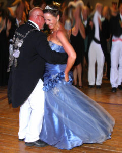 Beim Tanzen führt der Mann und das bedeutet für euch einfach führen und fallen lassen. Um nicht auf das Kleid zu treten, schiebt und schleift der Mann beim Tanzen seine Füße.